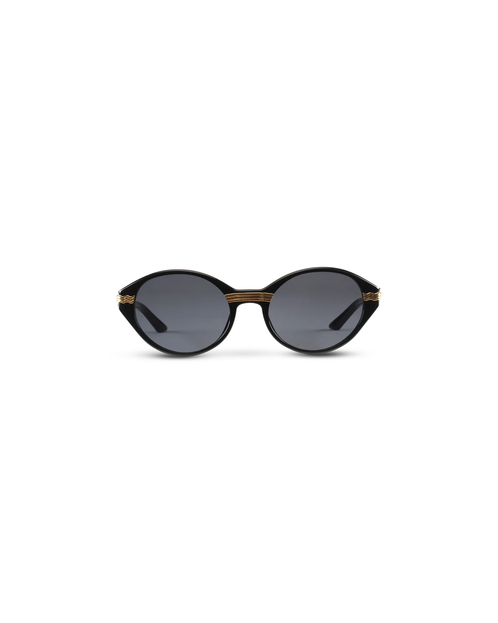 The Cannes is an oval cat-eye-shaped frame in a warm brown tortoiseshell acetate and dual colour metal details in 18k Yellow gold & Silver plating.