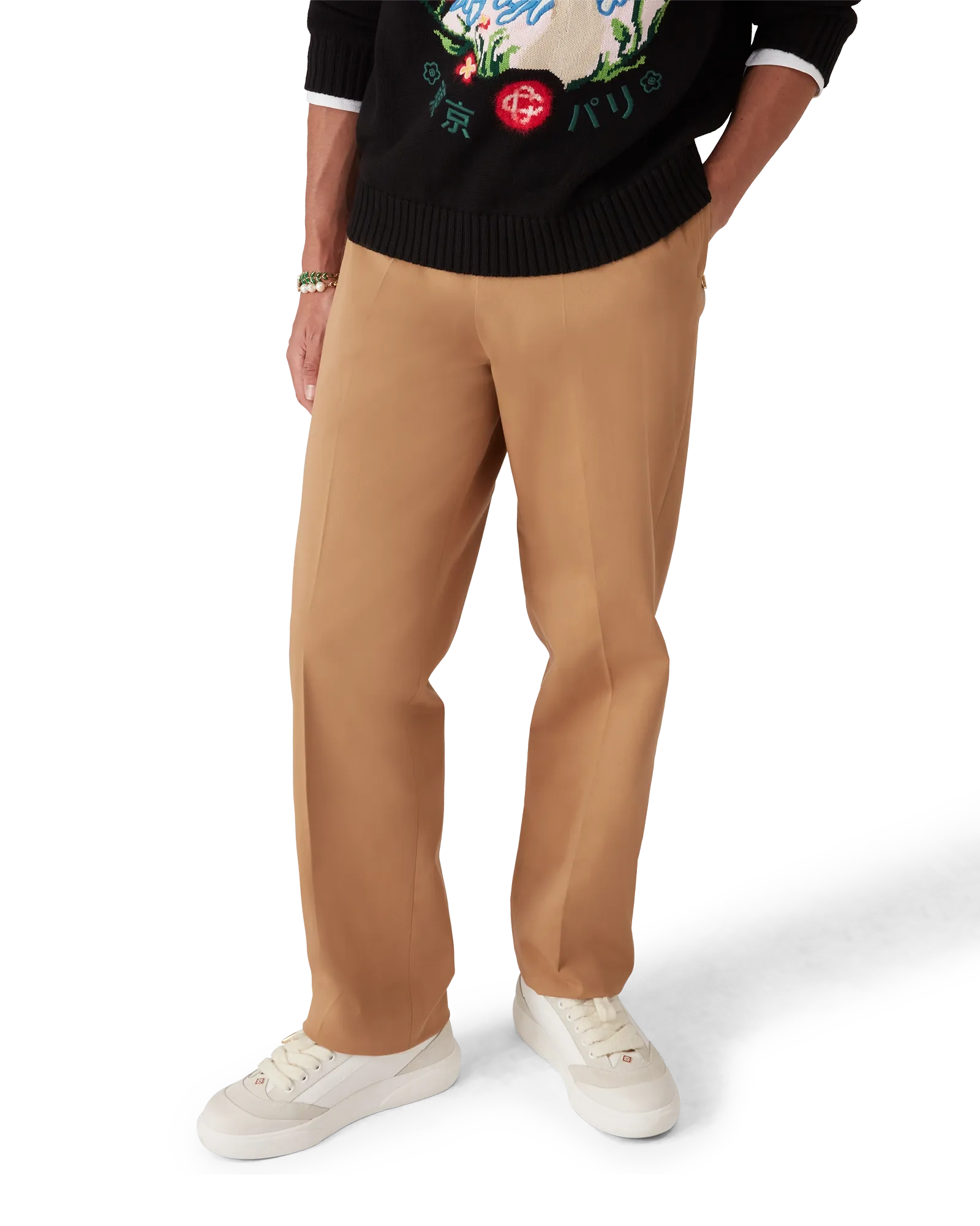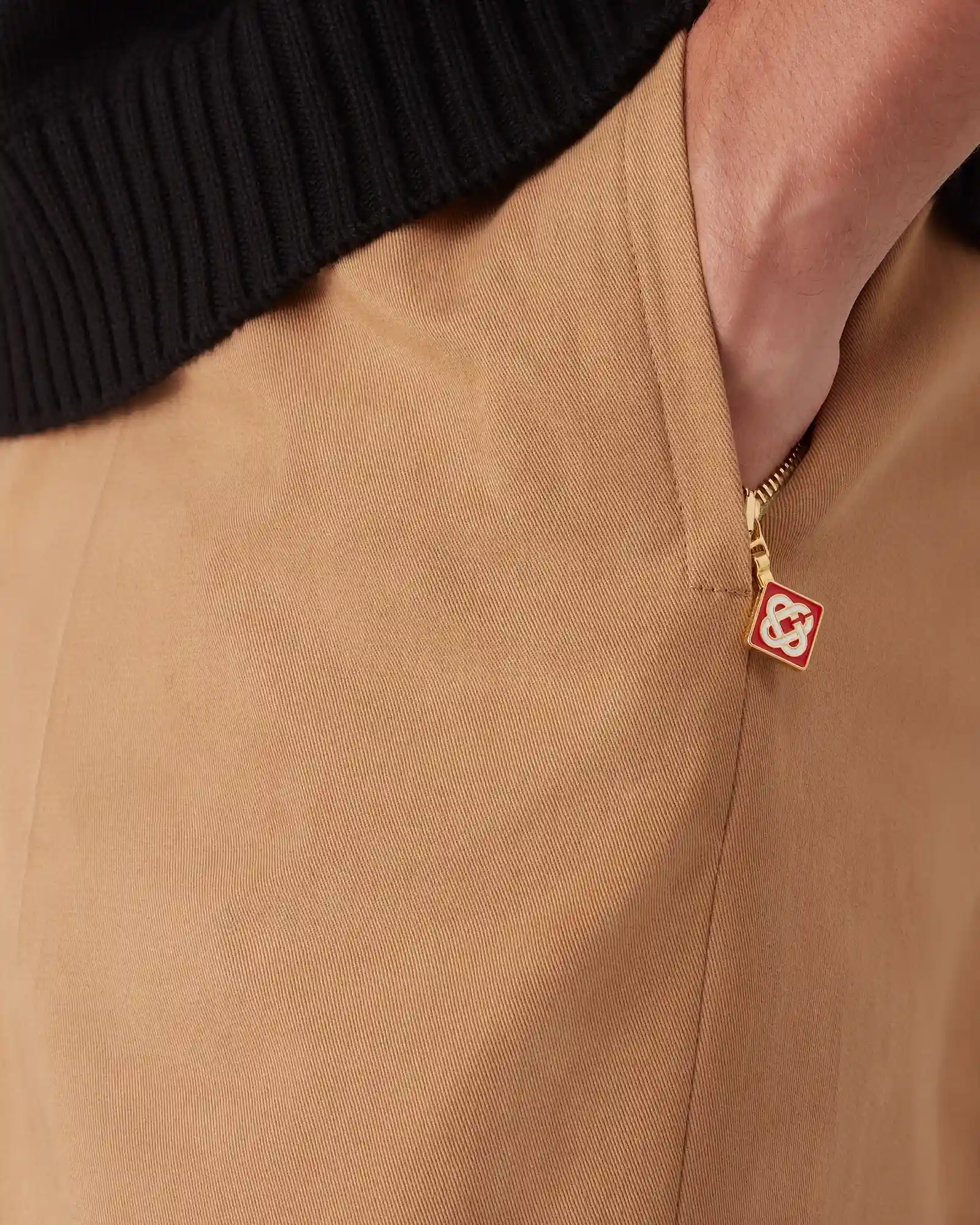 The chino trousers are a straight-leg design crafted from organic cotton fabric. Completed with a cotton lining, in-seam welt pockets with zip closure featuring the house’s signature diamond logo zipper tabs, zip closure, side adjusters, and welt back pockets.