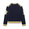 The fraternity jumper is a long-sleeved design crafted from a wool fabric adorned with Greek iconograhy patchworks and the Casablanca logo adapted to the ancient Greek theme. Completed with contrast patch shoulders, a V-neck, a multicolour striped rib collar, cuffs and hem.