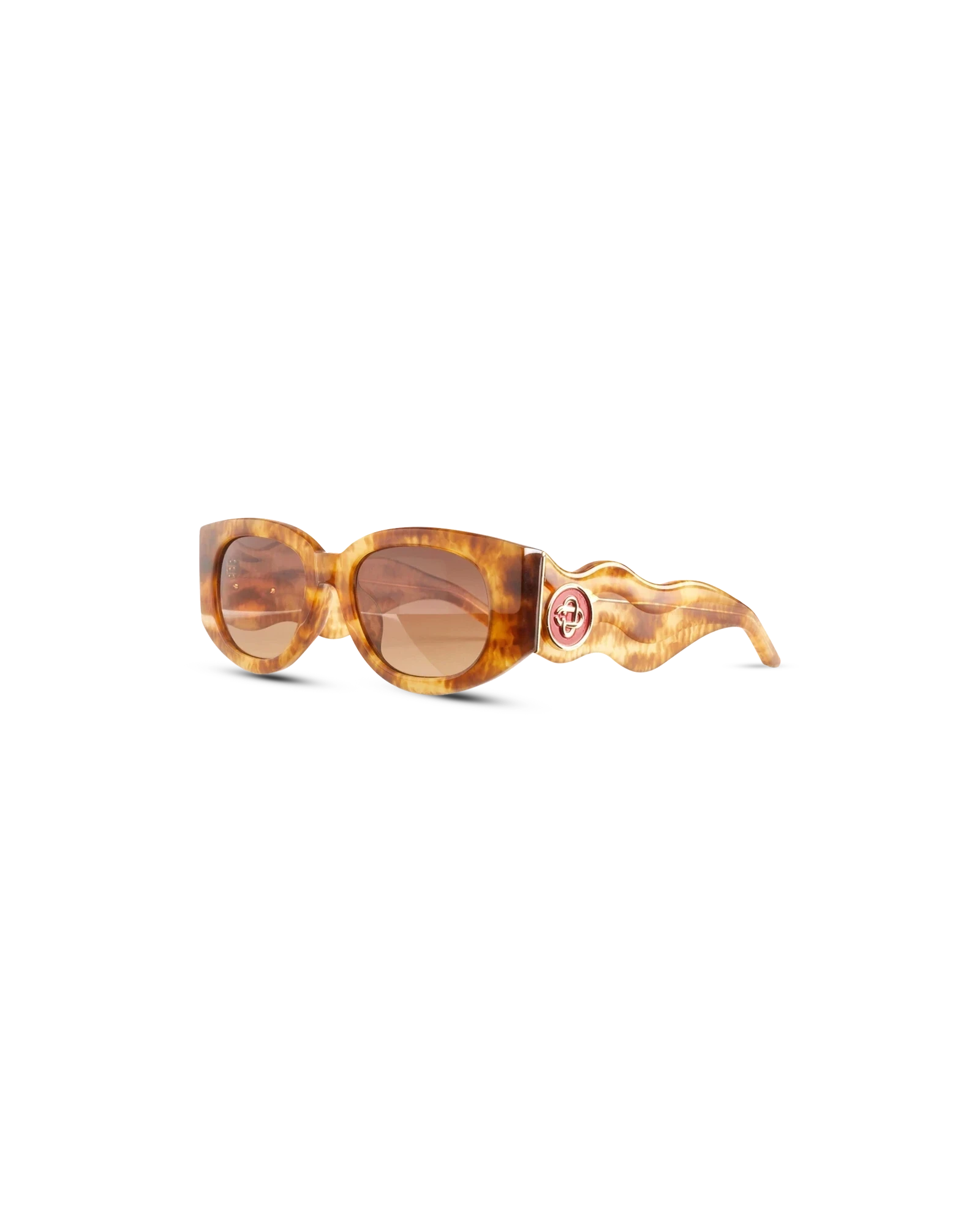 The Memphis sunglasses are a D-shaped frame style inspired by the Memphis wave design movement crafted from tortoise-shell acetate and nylon gradient lenses, featuring 18k gold-plated hardware and hidden Laurel branding details on the temple tips. Completed with the house’s signature diamond monogram logo positioned at the temples. This product comes with a custom Casablanca box, cleaning cloth, warranty and product detail booklet.