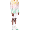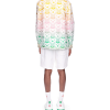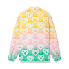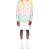 The Gradient Heart shacket is a long-sleeve jacquard printed design featuring the house’s monogram heart set against the season’s gradient, representative of the rich exchanges across cultural disciplines in African art, music and film. Crafted from a cotton blend fabric and completed with a collar, breast pocket, button closure, and signature gold rim enamel buttons.
