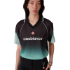 The gradient monogram jacquard football shirt is a short-sleeve design using the Park Hyatt colourway – an iconic Tokyo hotel that uses mint and black in its interior design – crafted from gradient jacquard monogram fabric. Completed with the house’s signature diamond logo patch, a rib collar, and a Casablanca logo across the chest.