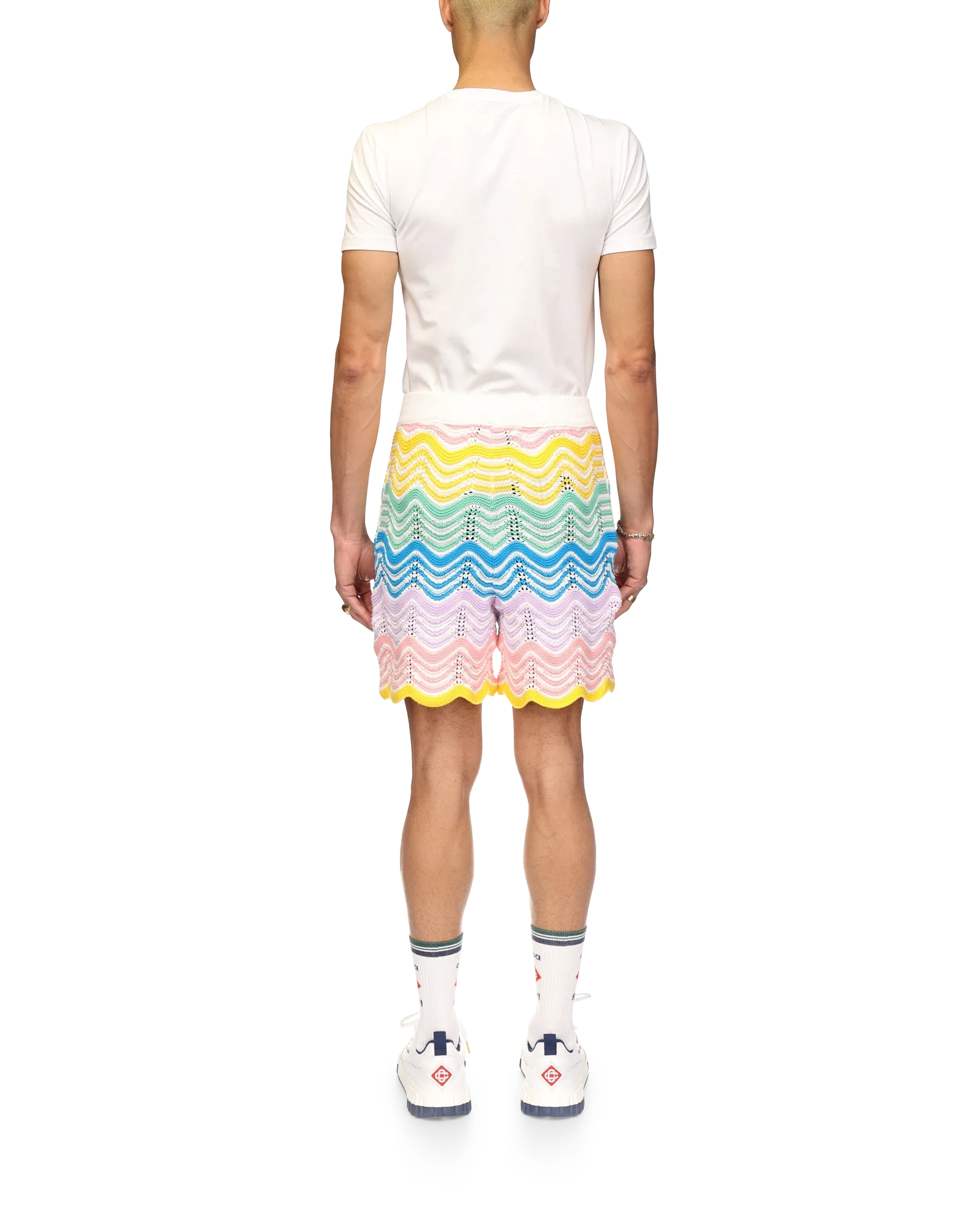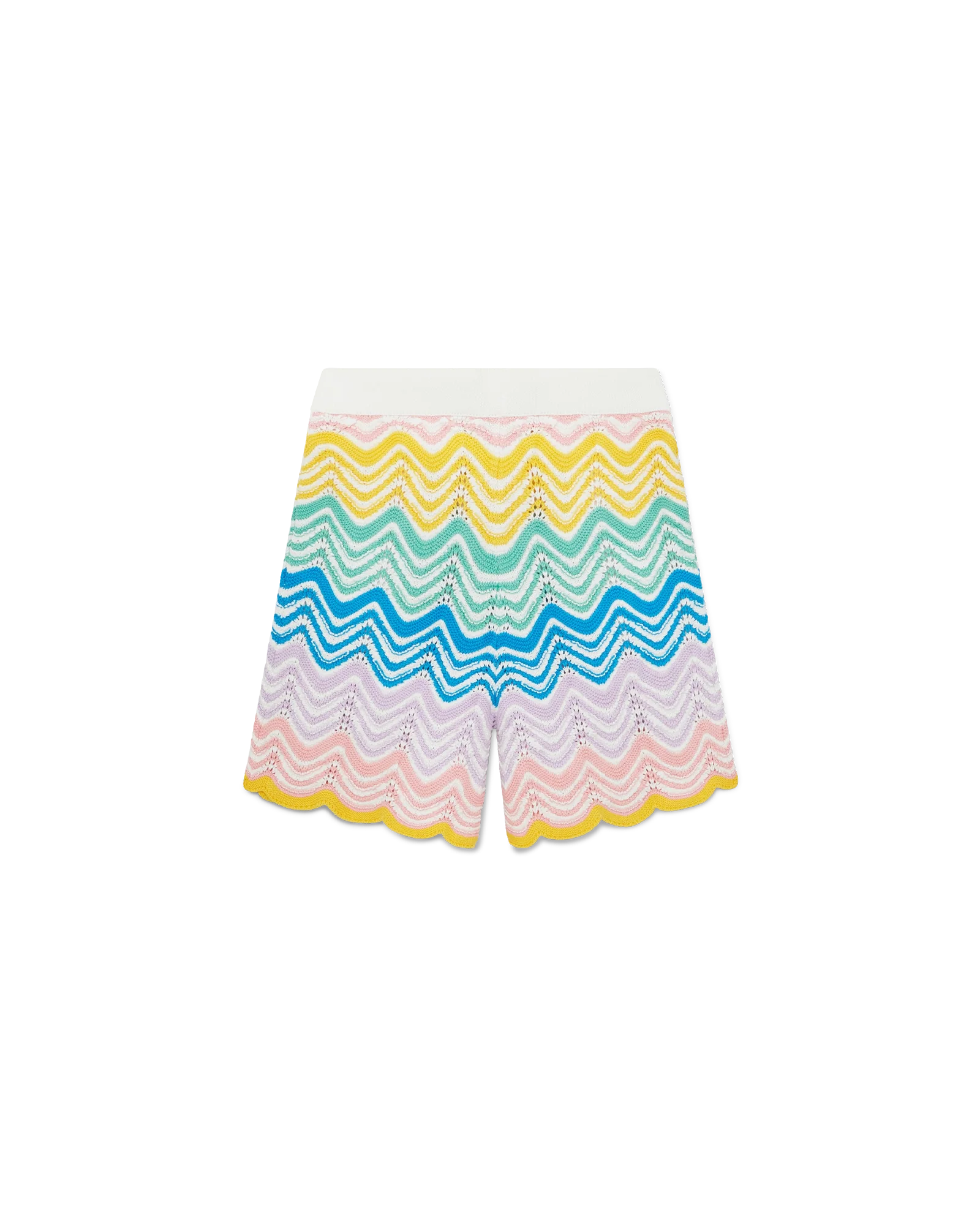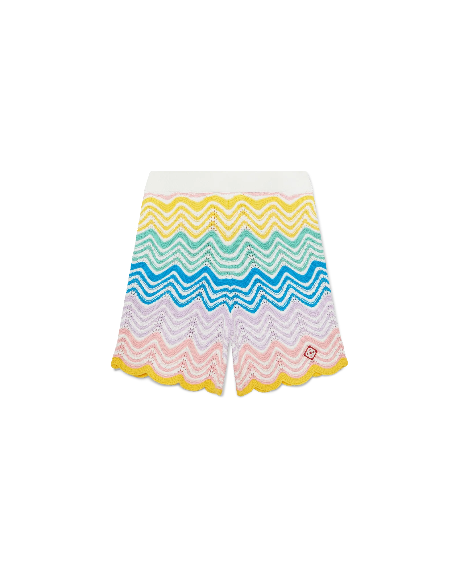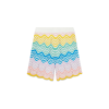 The Gradient Wave knit shorts are Casablanca’s classic design crafted from a crochet cotton fabric featuring the house’s wave pattern inspired by the Memphis movement serving as a foundational design element. The colour palette for this collection is light and idealistic, emphasising ethereal themes core to our brand. Completed with the house’s signature diamond logo, contrast white waistband with blue edge details.