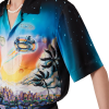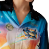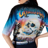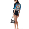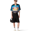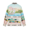 The La Prémonition silk shirt is a short-sleeve design crafted from a printed silk satin fabric featuring the season’s artwork, inspired by an eery vision of the skyline of LA at night, with UFO elements touching on vintage sci-fi inspiration. Completed with a Cuban collar, a breast pocket, hidden button closure with interlocking CC corozo buttons.