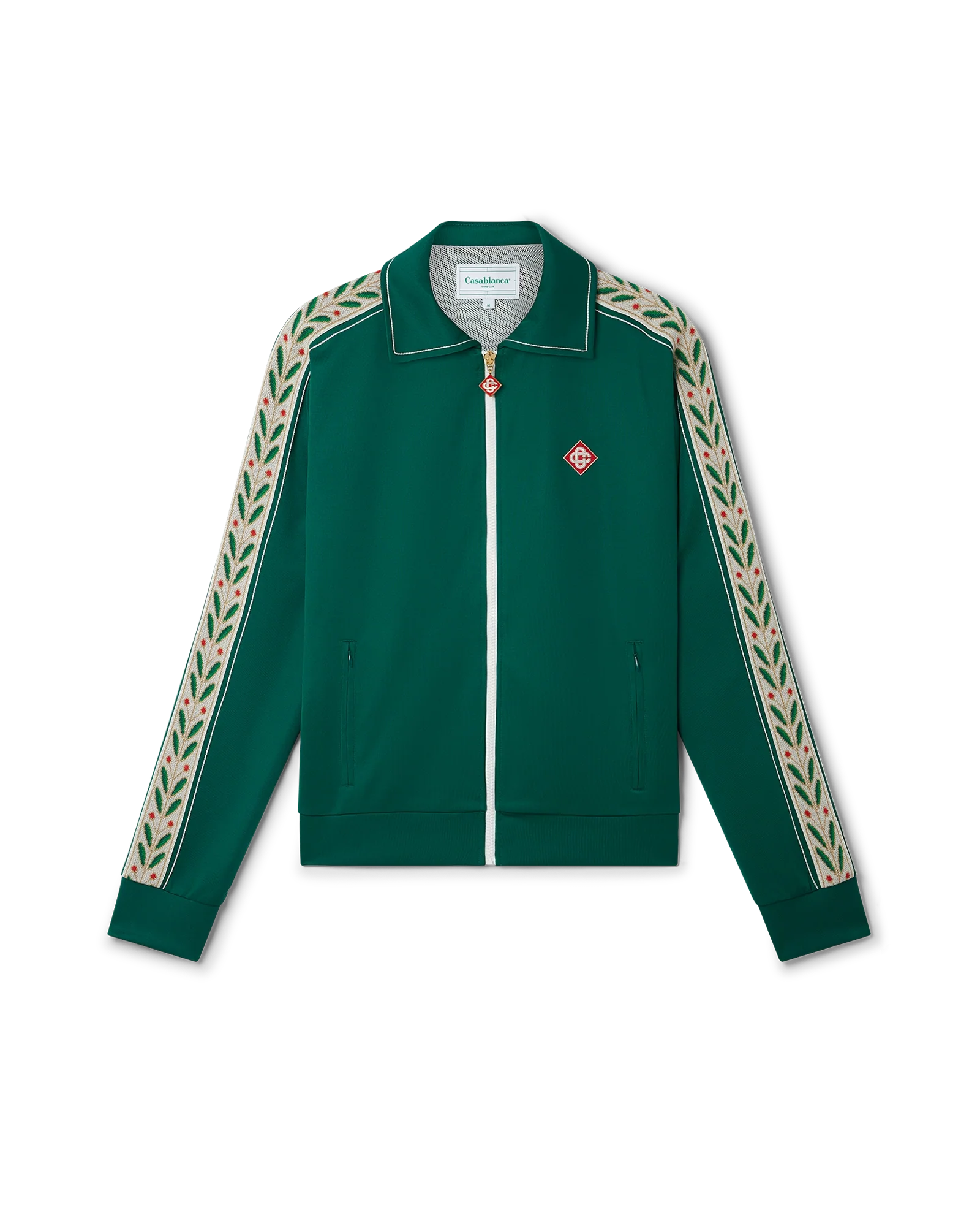 The Laurel track jacket is an elevated sportswear staple featuring the house’s signature laurel artwork on contrast ribbing and a diamond monogram logo. Crafted from a tricot fabric, the zip-up jacket has a classic Fits and side zip pockets, completed with a Casablanca branded label.