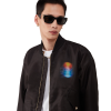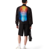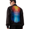 The organza gradient bomber jacket is a classic silhouette crafted from organza fabric featuring the season’s gradient and La Prémonition artwork of an eerie vision of the skyline of LA at night, with UFO elements touching on vintage sci-fi inspiration – on the chest and back. Completed with a zip closure, front pockets with a flap and signature gold rim pearl button closure, and standing rib collar, cuffs and hem.