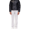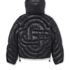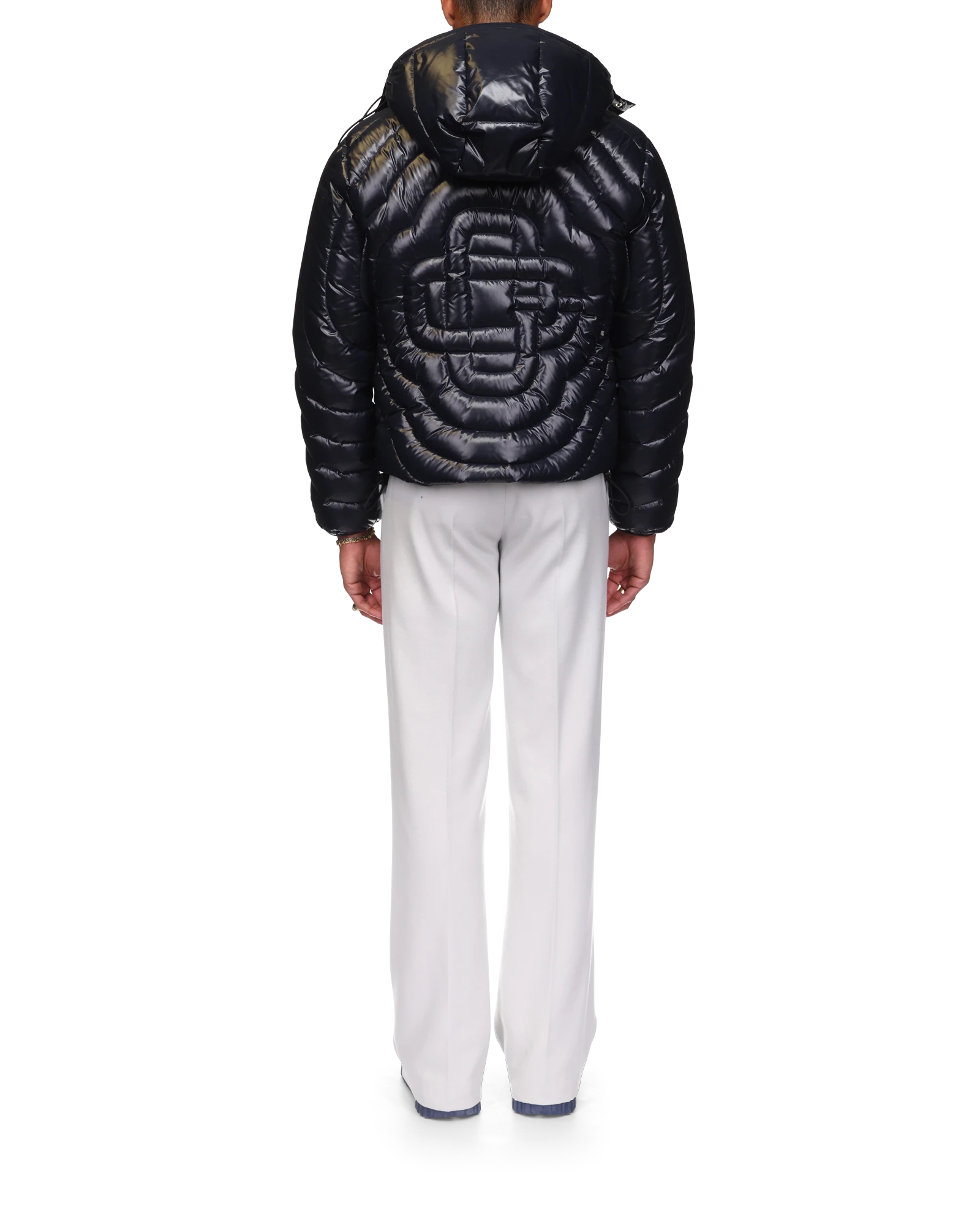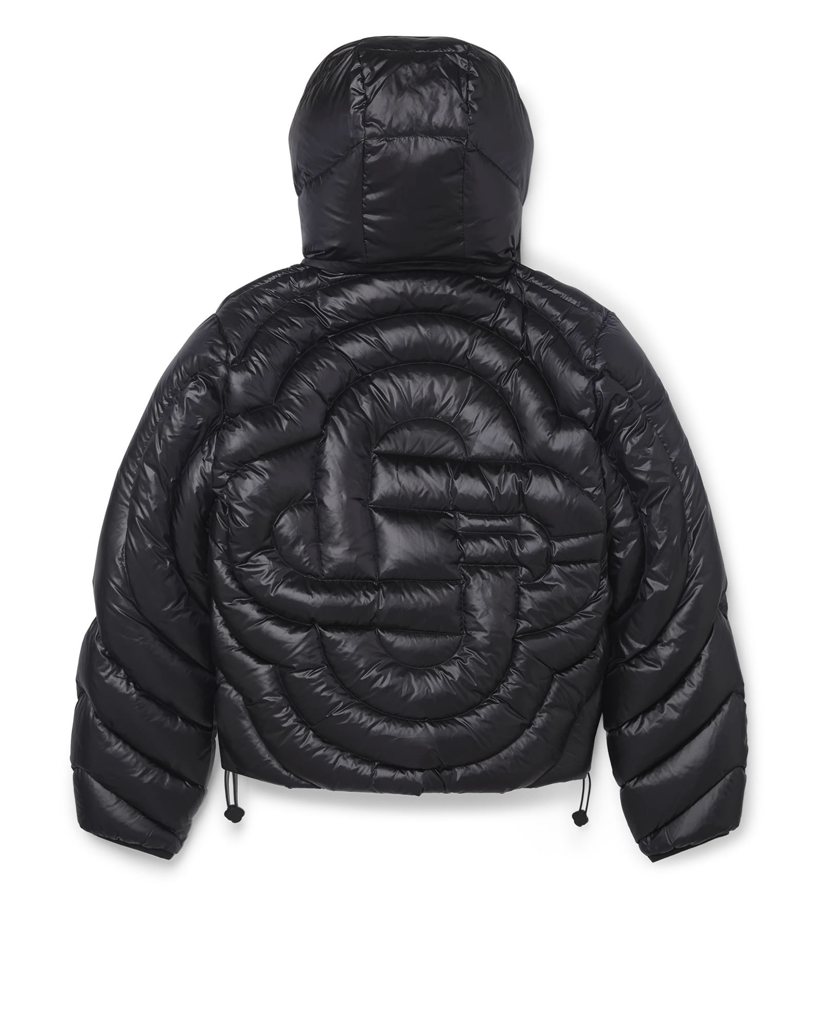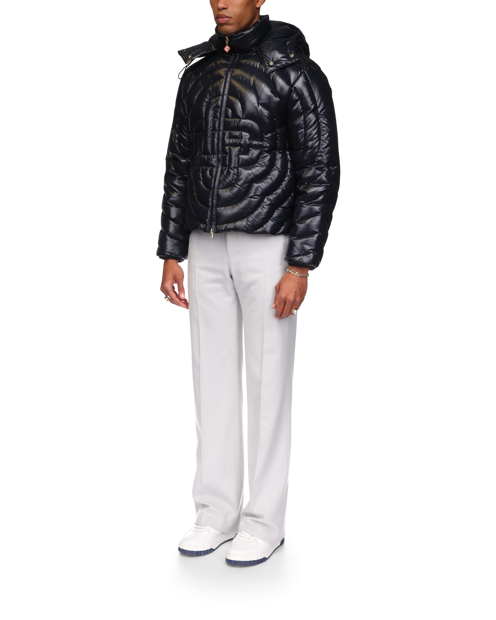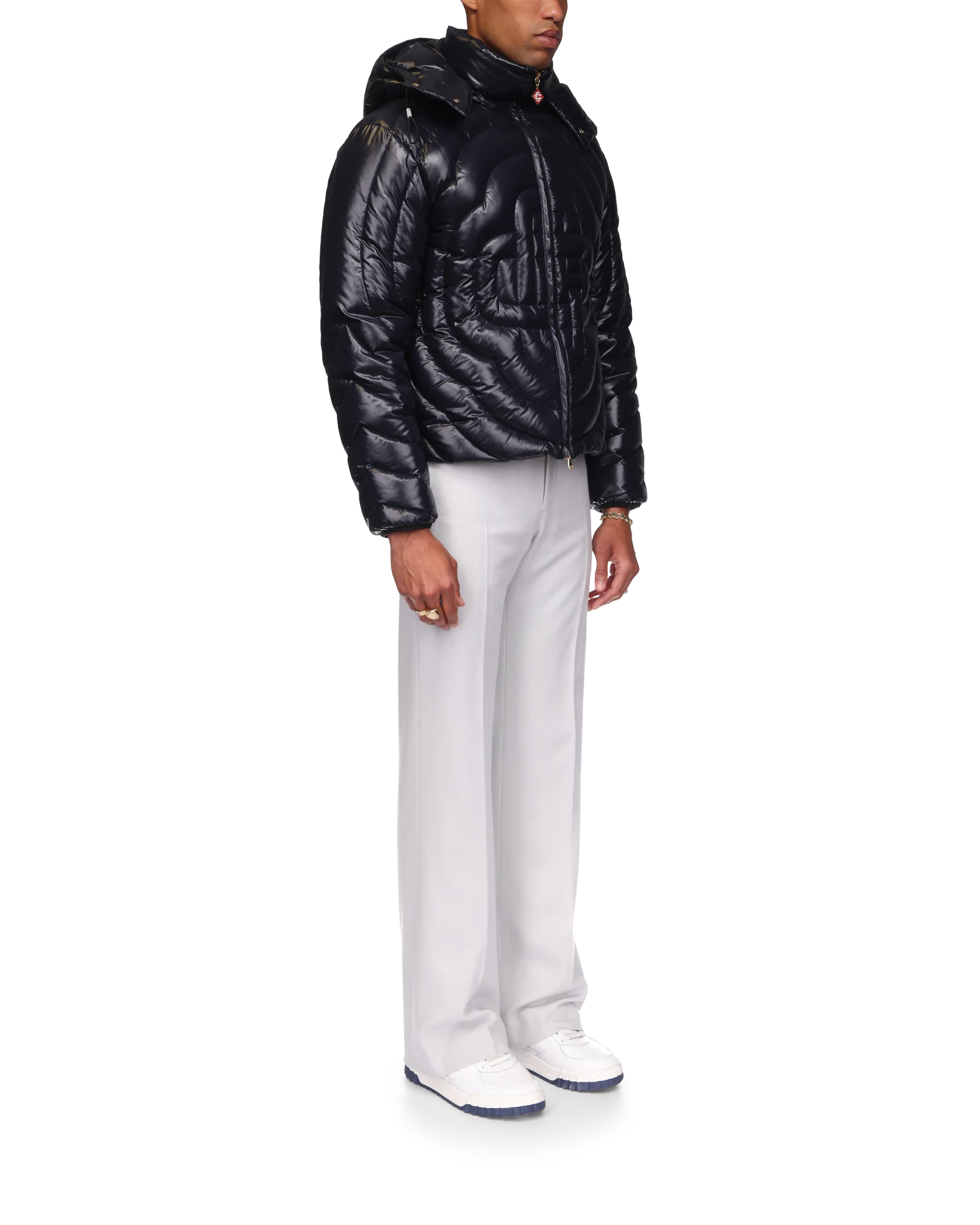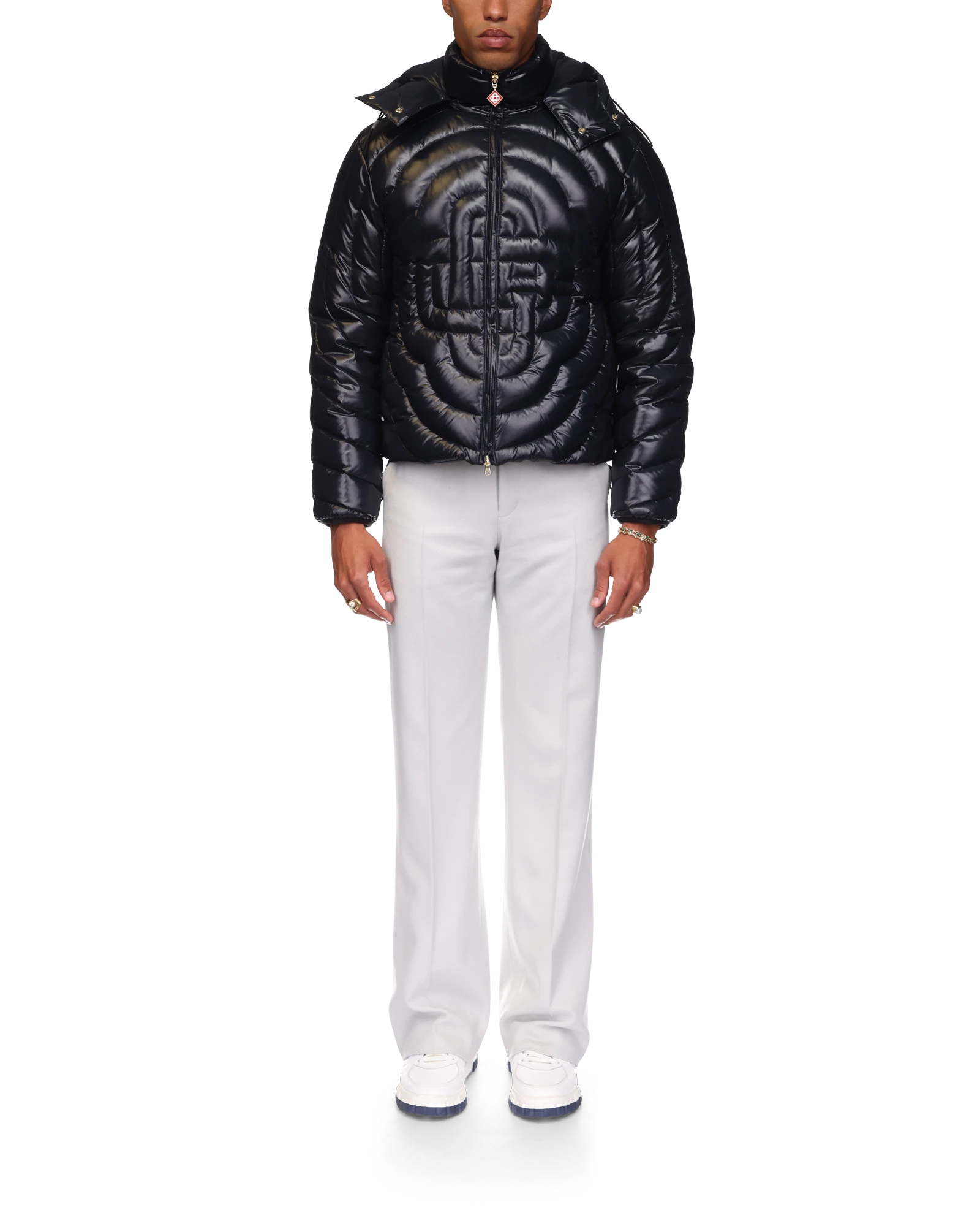 The quilted puffer jacket is a hooded design featuring the house’s distinctive diamond monogram on the front and back, crafted from a quilted fabric. Completed with a detachable hood, zip closure with gold-plated hardware and diamond logo, in-seam side pockets, a sleeve pocket, elasticated adjustable tabs on the hem and hood, zip closure, Casablanca branded tape cuffs.