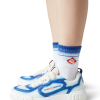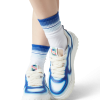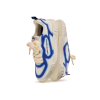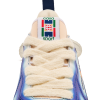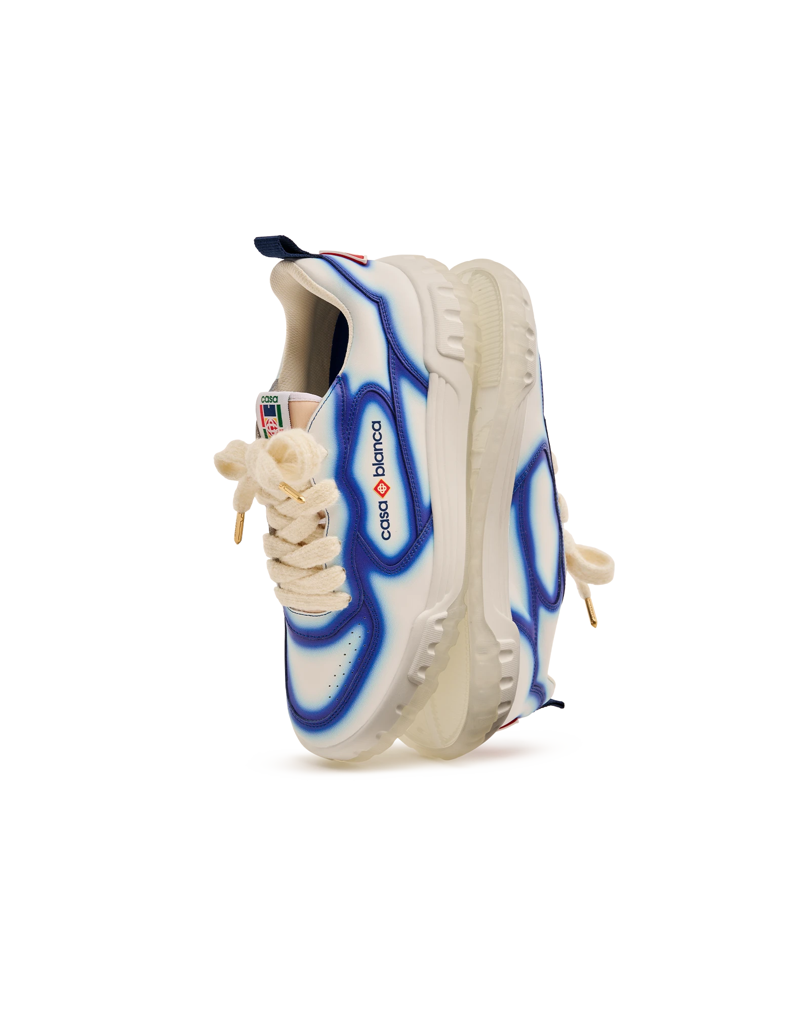 The design language of the Court Sneaker reflects the iconic silhouettes of the 90s. The colours featured throughout the rubber sole are a combination of the refined codes of tennis and classic architecture and create a unified palette throughout the shoe, with the focus on primary colours offset by tennis whites to create a sports focus colour story. The upper of the shoe features integrated, flowing panel lines as a nod to the iconic silhouettes of the 90s. Prominent Casablanca branding throughout is evident, including the brand’s signature diamond motif on the heel, silicone wordmark lateral panelling and the woven tennis court motif tongue label and insole, giving rise to its name, The Court.