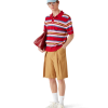 The stripe oversized polo shirt is a short-sleeve design crafted from stripe knitted fabric featuring the house’s signature diamond logo. Completed with signature gold rim pearl buttons, three-button placket, and rib cuffs, hem, collar and placket.