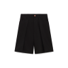 The wool pleated tailored shorts are a relaxed design crafted from wool fabric and feature a cotton blend lining. Completed with belt loops, pleats, a zip closure, front pockets, and welt back pockets with interlocking CC logo gold rim enamel button closure – designed for a relaxed fit.