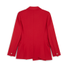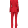 The asymmetric double-breasted jacket is a long sleeve design crafted from a sports tailoring wool blend fabric. Completed with this season’s ancient Greece inspired gold-plated C column pin, peak lapels, a back vent, flap pockets, and an asymmetric hem-line.