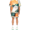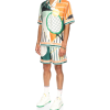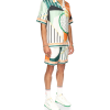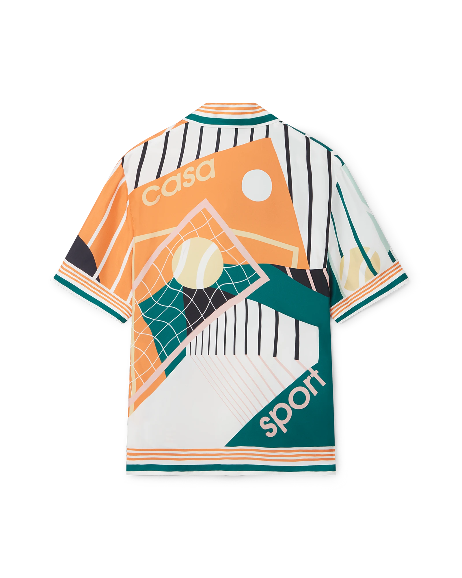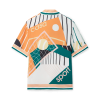 The Court Abstrait silk shirt is a short-sleeve all-over print design featuring the house’s classic iconography artwork of tennis equipment. Finished with stripe detailing on the collar, cuffs and hem, button closure and Casablanca branded label – designed for a classic Fits.