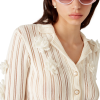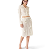 The flower lace knit shirt is a long-sleeve design crafted from lace knit cotton fabric. Completed with bell sleeves with slit detail, a collar, button closure, signature gold rim pearl buttons, and floral motif appliques.