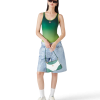 The gradient swimsuit is a printed design crafted from a breathable technical swim fabric, featuring a green gradient. Completed with contrast trims, high-cut legs, a scoop neck, a cut-out back, and the house’s signature diamond logo on the chest.