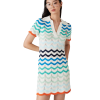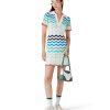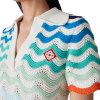 The Gradient Wave crochet dress is a short-sleeve mini design crafted from crochet cotton fabric featuring the house’s Memphis wave-inspired design element in gradient colours. Completed with a v-neck, a collar, and contrast edge detail on the cuffs and hem.