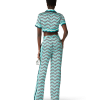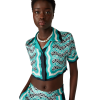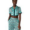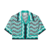 Casablanca Paris Women’s Monogram Wave Cropped Short Sleeve Silk Shirt | Turquoise