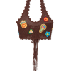 The motif crochet crop top is a halter neck design crafted from an open-weave crochet cotton fabric. Completed with motifs of the house’s classic design elements, and string fastening at the back. This piece is intended to be worn with its coordinating motif crochet trousers.