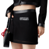 The open weave tailored mini skirt is an A-line design crafted from cordonetto fabric. Completed with zip closure, patch pockets and leather trim detail on the waistband and pockets.