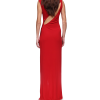 The sleeveless side split column dress is inspired by ancient Greece, and crafted from a crepe jersey fabric. Completed with this season’s new Casablanca logo button in a column-style C, zip closure, a fitted bodice with a grown neck, and a tucked-sheath skirt with an asymmetric hemline and a thigh-high split.