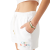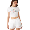 The stacked logo sweatshorts are a printed sportswear design crafted from organic cotton featuring the house’s stacked logo in pastel colours on the left leg. Completed with an elasticised waistband, gold-tipped drawstring fastening, side pockets and a patch back pocket – this style falls above the knee.